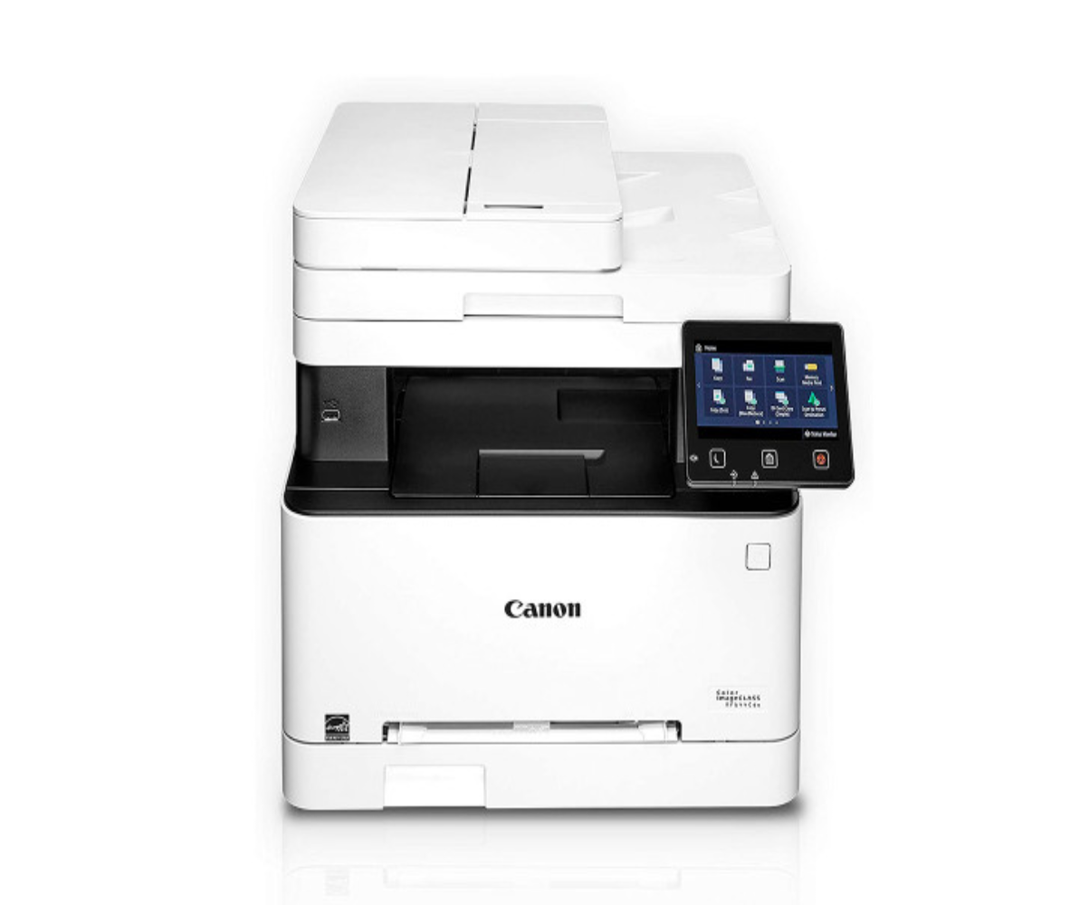 Multifuncionales Láser en Color Canon imageCLASS MF644Cdw, conectividadUSB 2.0 x2 (anfitrión), USB 2.0 x1 (dispositivo) High-Speed, 10/100/1000Base-T Ethernet (red), Wi-Fi 802.11b/g/n, Wi-Fi® de conexión directa, impresión, copia, escaneo, fax, velocidad de impresión hasta 22 ppm, duplex integrado, Pantalla Panel táctil de 5”, resolución 600 x 600 ppp, Ram Estandar 1 GB, ciclo recomendado 150 A 2500 páginas, bandeja de entrada de 250 hojas, alimentador manual de 1 hoja y salida de 75 hojas,