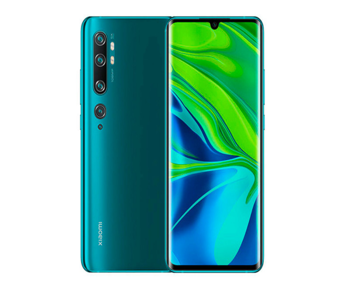 Note 10 Verde, Octa core, memoria 6 GB/128 GB, Penta cámara trasera conIA 108 MP+Cámara para retratos de 12 MP+20 MP, cámara ultra angular de 117°+Cámara macro de 2 MP/ cámara frontal selfie de 32 MP, Pantalla curva AMOLED 6.47″ 3D, Sensor de huella dactilar en pantalla, MIUI 11, batería 5260 mAh, NFC multifuncional